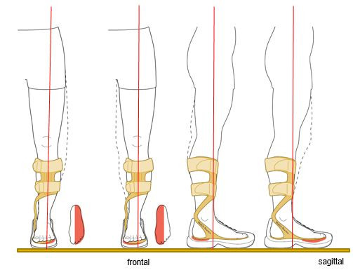 背伸肌力量減弱/ 跖屈肌力量減弱。輕度痙攣。例如,中風后,腦外傷,多發(fā)性硬化,神經(jīng)肌肉萎縮等。輕度伸膝肌力量減弱。針對踝關節(jié)不穩(wěn),內(nèi)附有旋后矯正帶。