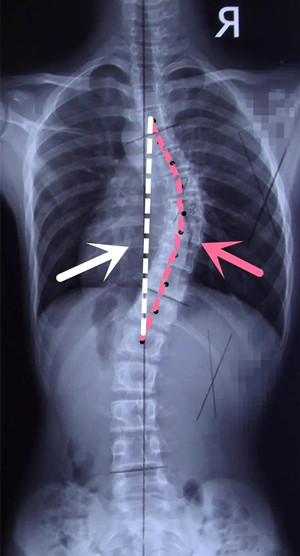 脊柱出現(xiàn)側(cè)彎后,軀干發(fā)生旋轉(zhuǎn)及扭曲變形,導(dǎo)致脊柱的縱向高度縮短,從而影響了患者的身高。度數(shù)嚴(yán)重的患者身高影響也嚴(yán)重,會(huì)使得身體比例出現(xiàn)異常。側(cè)彎對身高的影響與側(cè)彎的彎曲度數(shù)有直接的關(guān)系,國外的側(cè)彎治療工作者在患者的X片上進(jìn)行測量:找到要測量的彎弧上、下終椎,然后用一條弧線來串連上、下終椎之間各個(gè)椎體的中點(diǎn),最后再測量上、下終椎中點(diǎn)之間的直線距離,用弧線長度減去直線距離就得到了脊柱縮短的長度,這個(gè)代表了側(cè)彎對身高的影響數(shù)值。