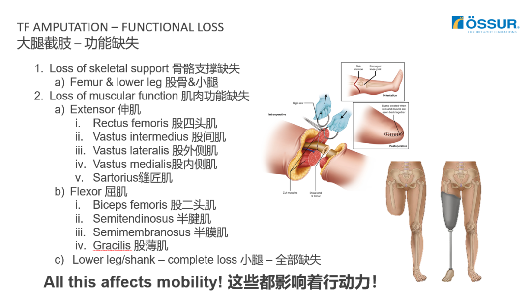 大腿截肢則意味著失去了大腿部分骨骼、肌肉以及整個小腿,這不僅是肢體的缺失,更是動力的缺失。在過去,傳統(tǒng)的機械膝關節(jié)沒有辦法代償缺失的肌肉和動力,截肢者不得不利用健側(cè)及殘肢來代償,這真的非常影響截肢者的行動力。