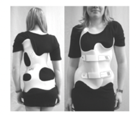 脊柱畸形的矯正是通過被動(dòng)和主動(dòng)支具機(jī)制的保守治療實(shí)現(xiàn)的。即借助主動(dòng)或被動(dòng)伸展,通過側(cè)墊矯正,根據(jù)三點(diǎn)力原理的側(cè)向壓力,壓縮,將軀干向相反側(cè)彎曲,過程中施加的壓力進(jìn)行主動(dòng)支撐和校正。