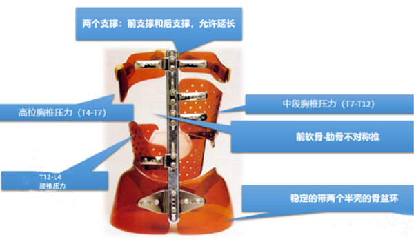 1、運(yùn)用了耦合運(yùn)動來實(shí)現(xiàn)三維矯正,結(jié)合幾何和機(jī)械反扭轉(zhuǎn)來矯正錐體的旋轉(zhuǎn),這種矯正機(jī)制與三點(diǎn)力矯正原理和抗旋轉(zhuǎn)原理不同。在胸椎中根據(jù)關(guān)節(jié)面的前方定位,在彎曲中進(jìn)行區(qū)域前方矯正,在腰椎中根據(jù)關(guān)節(jié)面的矢狀定位,在移位中進(jìn)行區(qū)域前方矯正。