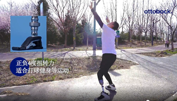 額狀面上來看,該腳板的內(nèi)外翻角度可以高達(dá)+/-10度,支持用戶身體重心的偏移,無論是坡道還是踩踏障礙物都可以快速實現(xiàn)全腳掌迅速著地,降低地面反作用力對殘肢的剪切力,提高假肢穿戴舒適度;同時在打羽毛球、乒乓球等運(yùn)動時可以靈活移動身體,享受運(yùn)動的快樂。