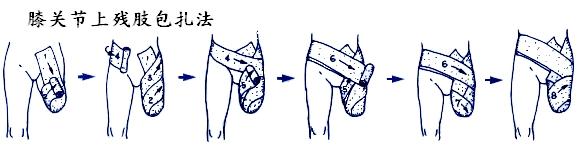 殘肢照顧的實(shí)際技巧可分為兩方面,分別是手術(shù)后的硬質(zhì)包扎法以及壓迫性纏繞法。僅以壓迫性纏繞法提出說(shuō)明。壓迫性纏繞法是以彈性繃帶或彈性襪包再殘肢的外側(cè),可以促進(jìn)殘肢的萎縮及殘肢的成熟。彈繃?yán)p繞時(shí)須注意壓力分布的情形,殘肢末端的纏繞壓力必須比近端為大,才不會(huì)阻礙殘肢靜脈的回流。新截肢患者,只要不穿戴假肢站立或步行的時(shí)候,殘肢都應(yīng)以彈性繃帶纏繞,這個(gè)準(zhǔn)則必須遵守到穿戴義肢滿一年之后才停止。